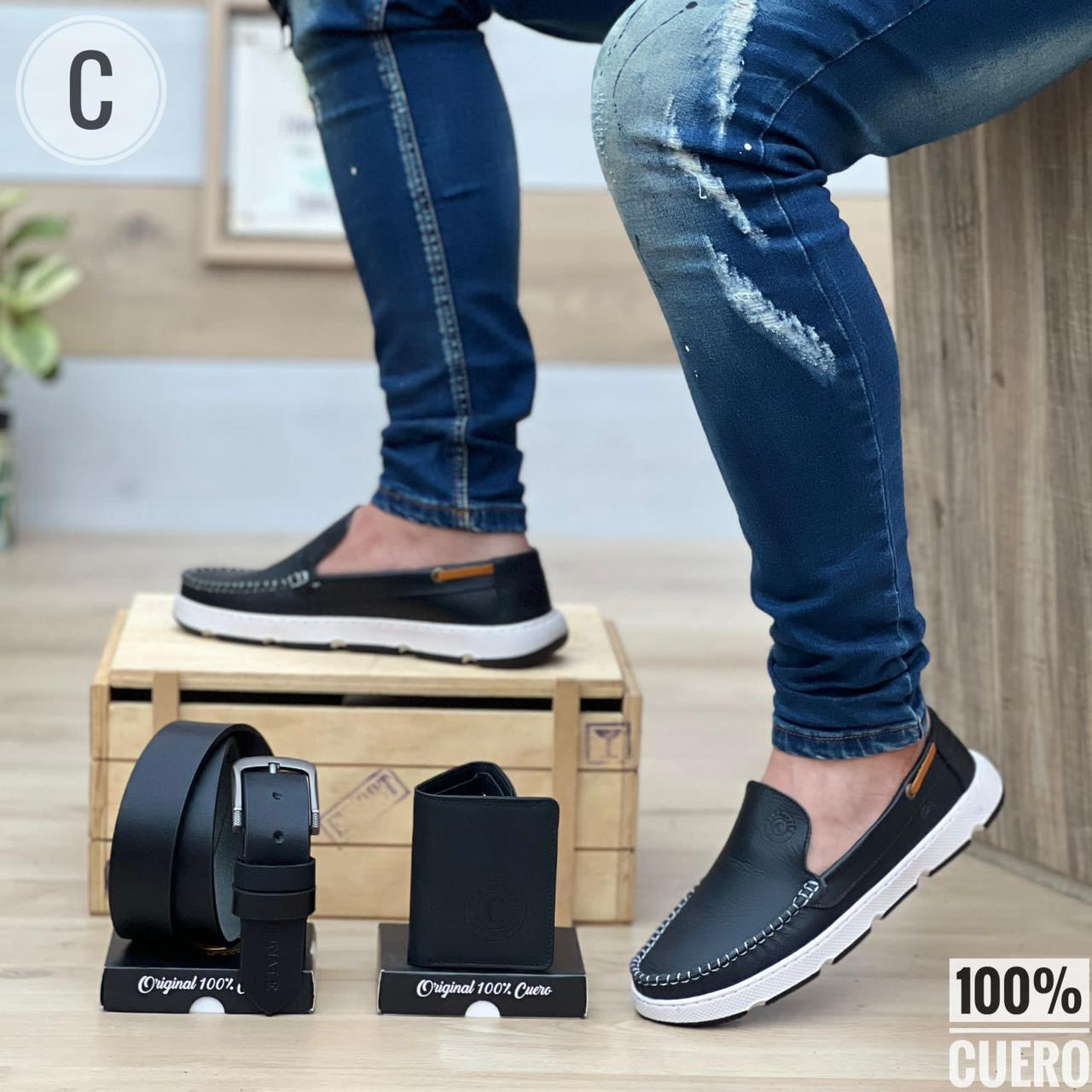 Combo Trio: Mocasin + Correa + Billetera en Cuero Enserado Caballero